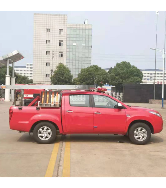 便捷式消防作戰(zhàn)單元由江鈴皮卡、警報系統(tǒng)、手抬泵、電動小推車、升降裝置、液壓總成、水帶整理架、軟水管U型架、隨車配套的器材支架及整理箱等組成。
