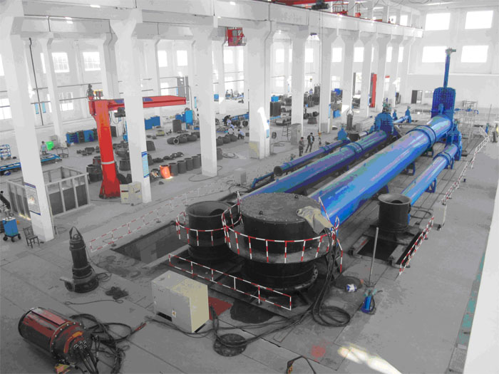 江蘇亞太水務集團公司是以江蘇亞太泵閥有限公司為核心,聯(lián)合環(huán)保、閥門、疏浚、真空泵各分公司事業(yè)部而組建的綜合性集團公司。公司在城東工業(yè)園區(qū)征地建設現(xiàn)代化廠房、實驗室和辦公樓。為了滿足公司特大型潛水電泵的研發(fā)需求,江蘇亞太以實施省科技廳重大科技成果轉化項目為契機,投入2000萬元興建現(xiàn)代化大型水泵試驗臺。該試驗臺測試水池容量達10000m3,管路配置從50mm到2200mm,試驗功率最大達2600kW,電壓從380V-10000V,測試系統(tǒng)實現(xiàn)了全自動信息采集和處理,配置了最先進的參數(shù)采集傳感器,數(shù)據(jù)傳入計算機收集處理管理。泵綜合試驗臺經國家排灌及節(jié)水設備產品質量監(jiān)督檢驗中心驗收,達到ISO9906:1999《回轉動力泵水力性能驗收試驗1級和2級》中的2級精度要求。
